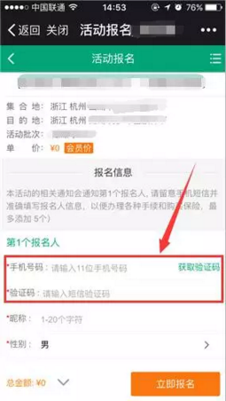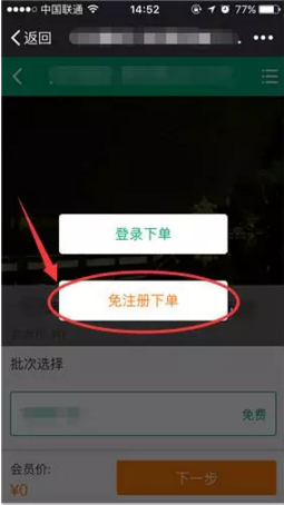打开手机端活动页面,点击报名时会出现:登录下单及免注册下单